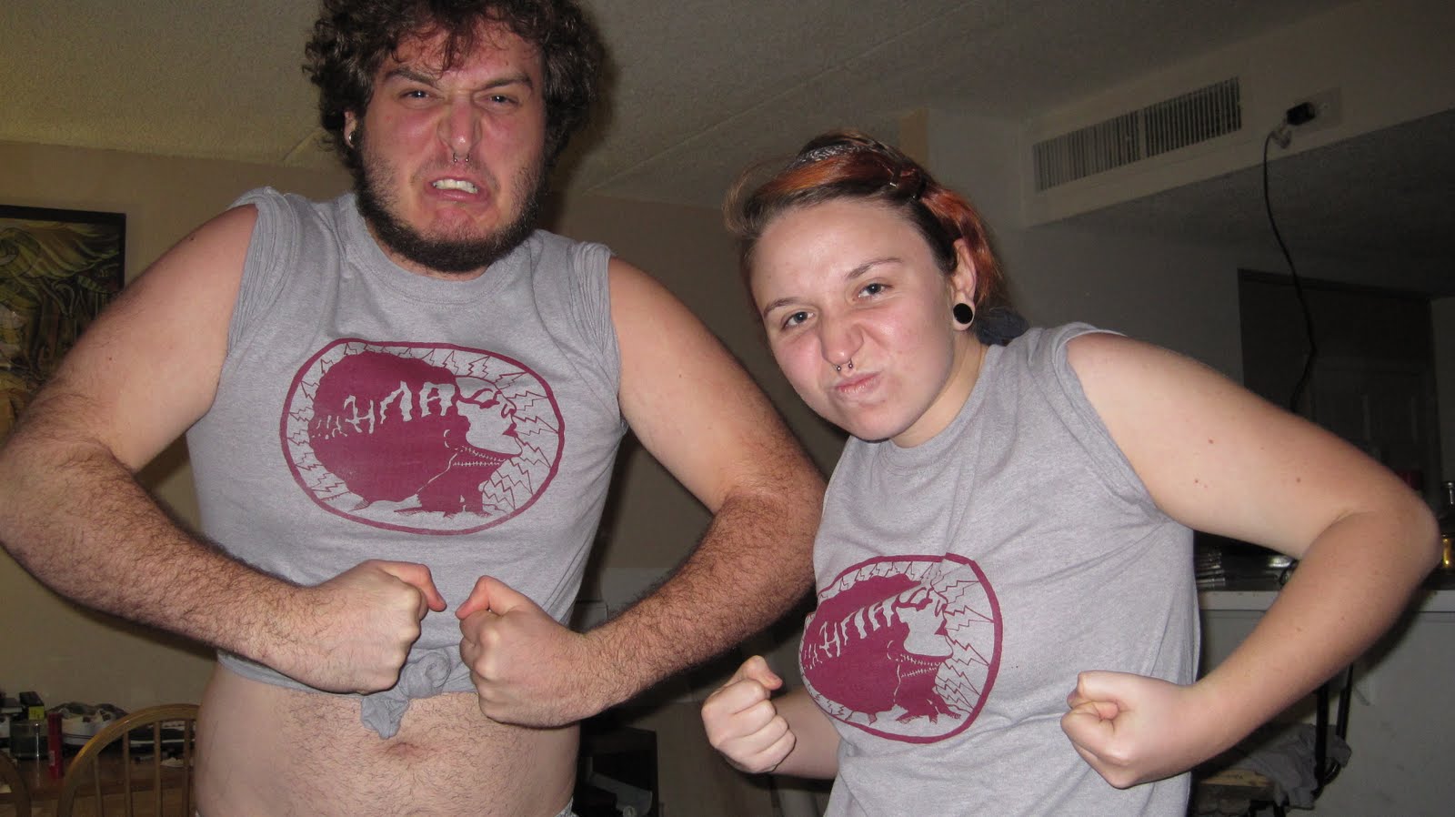 Cheek woochie and latex bloody knuckles (with my boyfriend).